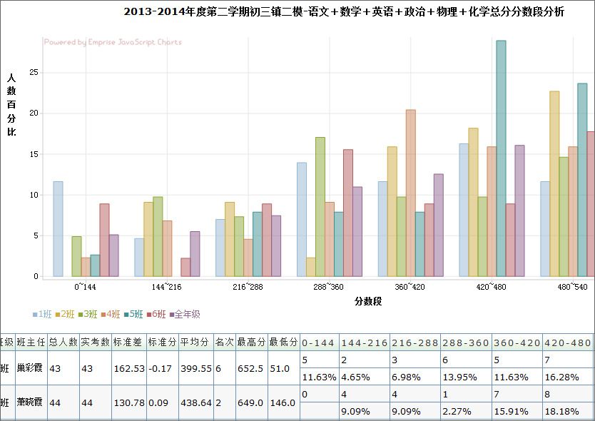 2、班級對比類評價系列——包括單科區(qū)間分各班人數(shù)分布圖、各班單科成績分析圖,單科過程性跟蹤班級分布對比圖