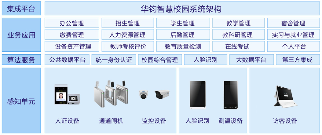 從“教學與管理”出發(fā),貼合“智慧校園”管理訴求,以“軟硬結合”技術作為立足點,融合“物聯網和大數據”多項能力,打造涵蓋“數字校園、通行考勤、平安校園、宿舍管理、課堂考勤、會議簽到、刷臉考試和人臉支付”在內的智慧校園解決方案,助力校園教務教學智能化和智慧化管理,提升校園綜合管理質量。